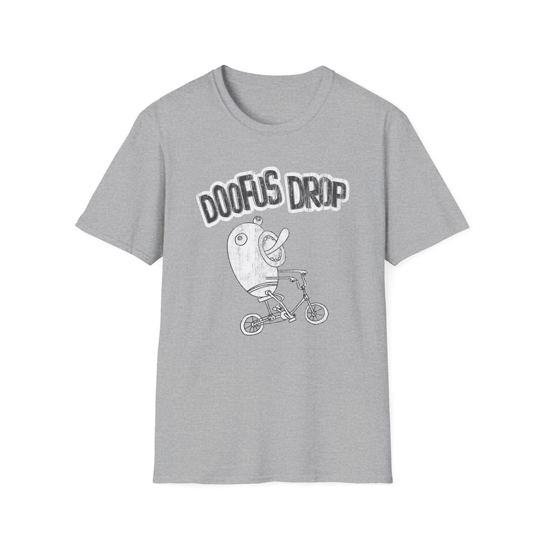 What can a Doofus Drop fan do to have a doofy good happy time when they can’t play Doofus Drop? This Doofus Drop Bike T shirt is the coolest way to tell the world around you just what you are thinking about 120% of the day. High quality printing and well made shirt. Kids sizes are what we need. Drop a Doofus and spill the beanz.